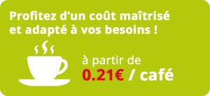 • Profitez d’un coût maîtrisé et adapté à vos besoins : à partir de 0.21€ / café